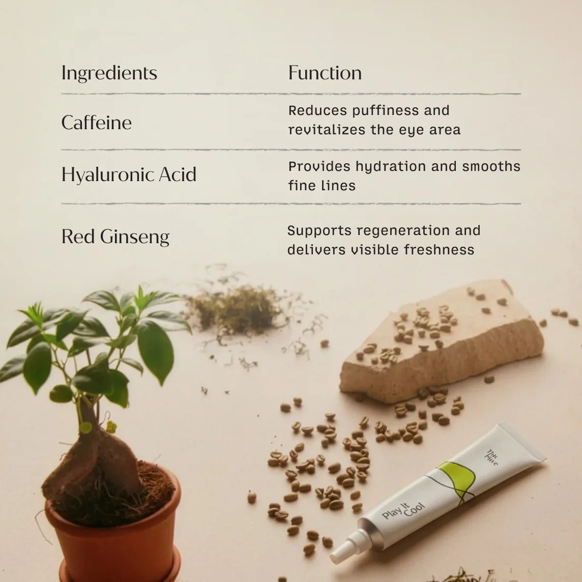 Wach, gepflegt und durchfeuchtet - Play it Cool ist ein revitalisierendes Augengel mit Koffein, Ginseng und Hyaluron.