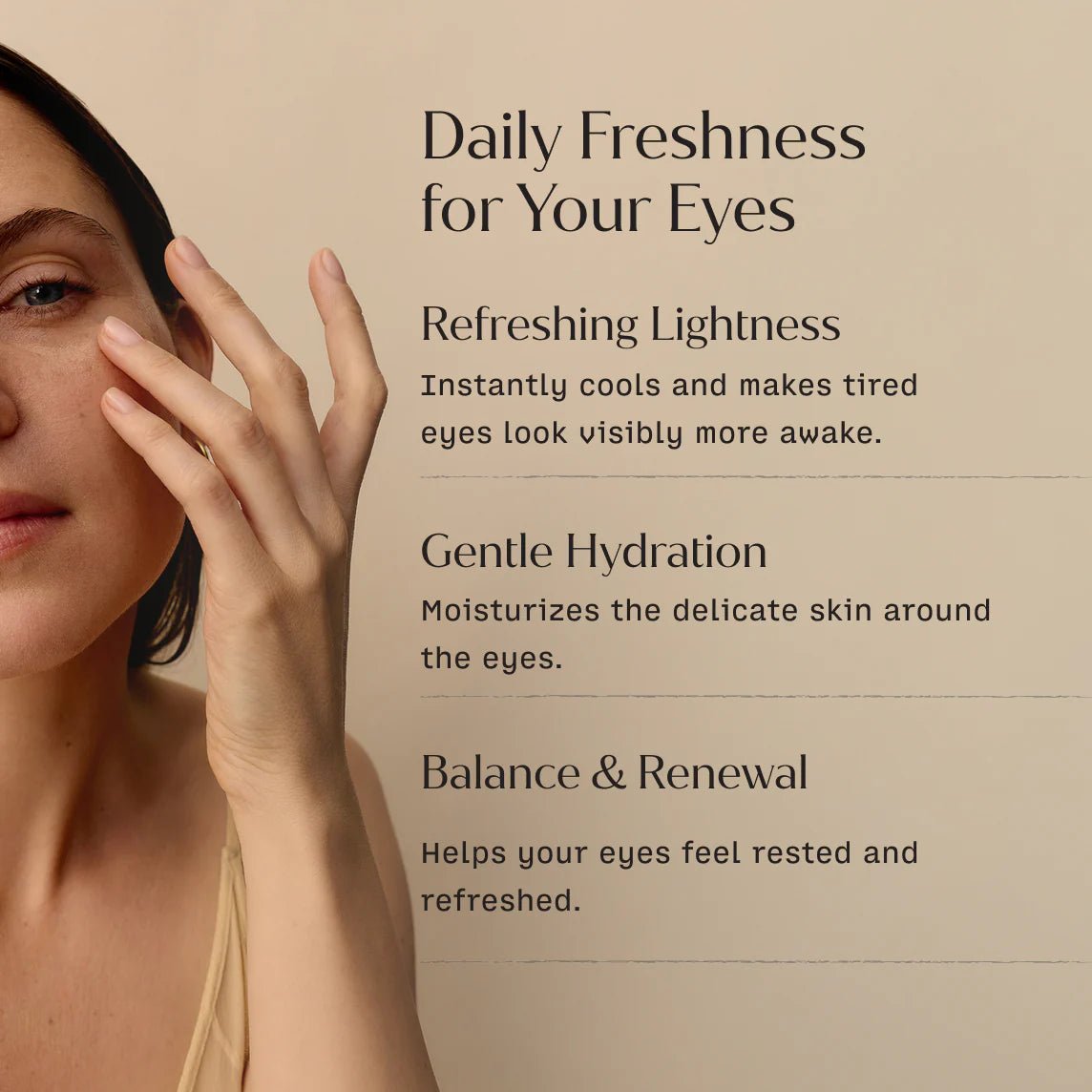Die belebende Augenpflege mit leichter Gelstruktur, schützenden Antioxidantien und aktivierenden Mikronährstoffen stärkt und strafft die empfindliche Augenpartie. Trockenheitsfältchen und ein müder Blick waren gestern. Die sanfte Formulierung spendet intensiv Feuchtigkeit und sorgt für ein gestärktes Hautgefühl, selbst bei empfindlichen Augen.