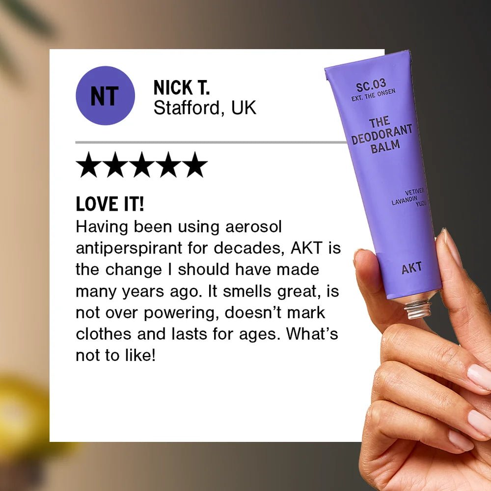 AKT London wurde von Ed Currie und Andy Coxon gegründet, zwei ehemaligen West-End-Darstellern, die 2015 bei einer Show aufeinandertrafen. Ihr Alltag auf der Bühne war extrem anstrengend, klassische Deodorants konnten ihren Bedürfnissen nicht gerecht werden. Aus dieser persönlikche Erfahrung heraus entwickelten sie Ihre Deo-Linie. Die Marke steht für Natürlichkeit, Nachhaltigkeit und Inklusivität – alle Produkte sind vegan, genderfrei und plastikfrei verpackt.