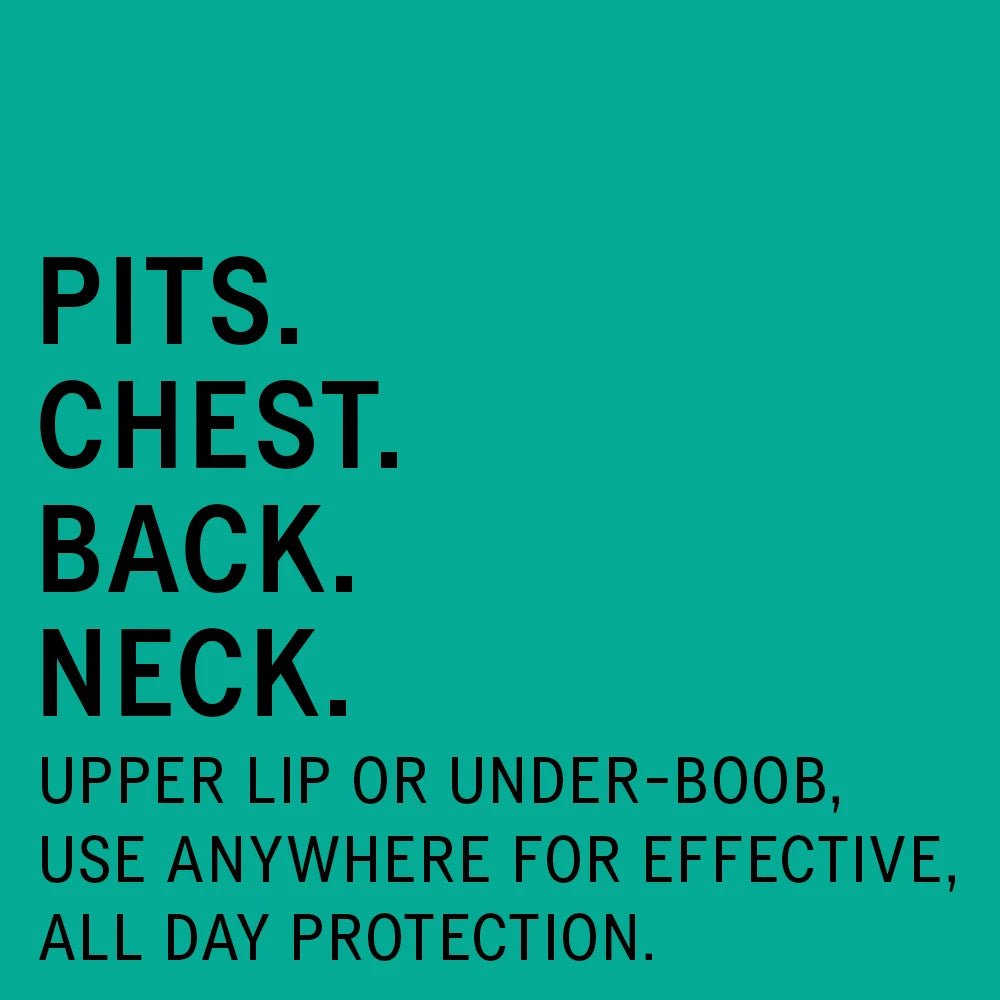 - Vielseitig einsetzbar: Nicht nur für die Achseln — auch Brust, Oberschenkel, Stirn oder Füße können von dem diskreten Schutz profitieren.