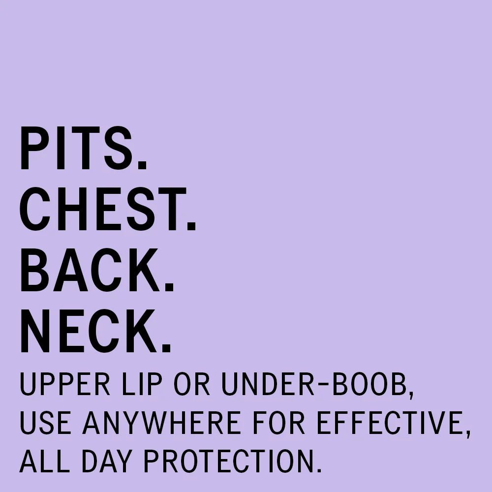 - Vielseitig einsetzbar: Nicht nur für die Achseln — auch Brust, Oberschenkel, Stirn oder Füße können von dem diskreten Schutz profitieren.
