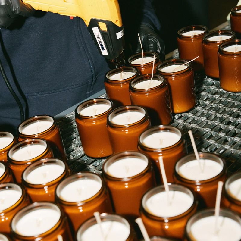 P.F. Candle Co.: "Unsere Rezepturen sind einfach - alle Kerzen werden aus 100 % Sojawachs aus heimischem Anbau, feinen Duftölen und Baumwolldochten hergestellt. Die von uns verwendeten Duftstoffe sind vegan, frei von Parabenen und Phthalaten und wurden nicht an Tieren getestet.