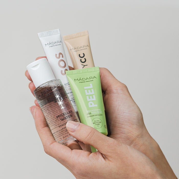 Der perfekte Mádara Startpunkt. Ein vierteiliges Set beliebter Mádara Ikonen für wirksame Hautpflegerituale, ideal zum Ausprobieren oder auf Reisen.