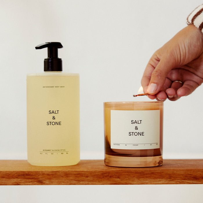 Die schönen Duftkerzen von Salt & Stone in stilvollem Glas gegossen, machen sich toll in jeder Umgebung. Die veganen Kerzen aus Kokosnuss- und Sojawachs sind in drei raffinierten Duftrichtungen erhältlich. Entspannend und inspirierend zugleich, bringen die Kerzen kalifornische Lebensart direkt in unser Wohnzimmer... and the livin is easy!