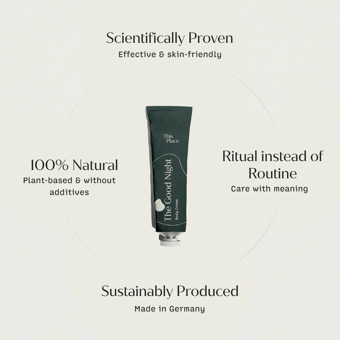 - die pflanzenbasierte The Good Night Schlafcreme unterstützt eine entspannende Abendroutine und einen erholsamen Schlaf